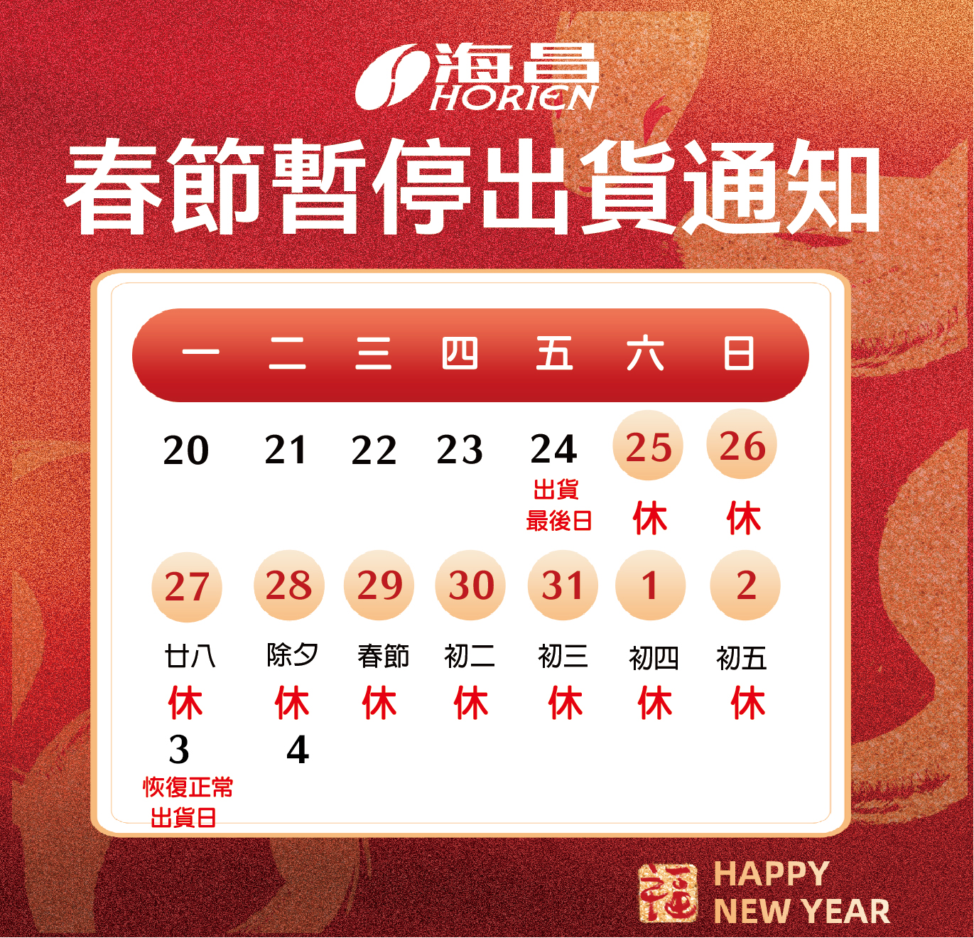 【春節暫停出貨公告 】